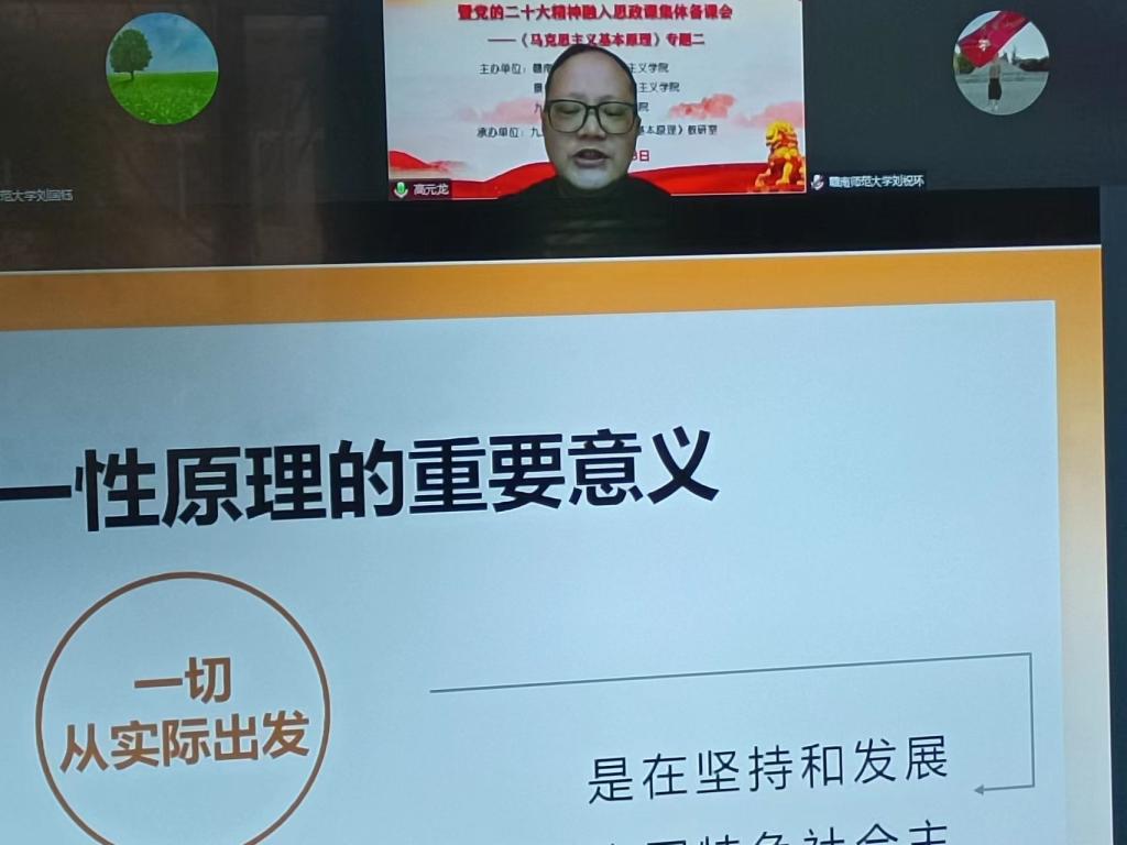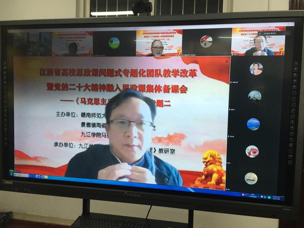 为深入学习贯彻党的二十大精神和习近平总书记在学校思想政治理论课教师座谈会上的讲话精神,进一步推进“大思政课”试验区建设,提高思政课教学效果,在中共江西省委教育工委宣传部、江西省教育厅社政处的统一指导下,3月8日下午,贝博官网马克思主义学院举办了全省高校《马克思主义基本原理》课(专题二)问题式专题化团队教学改革暨党的二十大精神融入思政课集体备课会。贝博官网全体《原理》课程主讲教师、赣南片区、景德镇片区、九江片区等高校近100位《原理》课教师线上线下参加会议。教育部全国高校思政课教指委“马克思主义基本原理”分教指导委员、湖北大学马克思主义学院院长熊友华教授出席线上视频会议,并作指导点评。