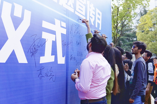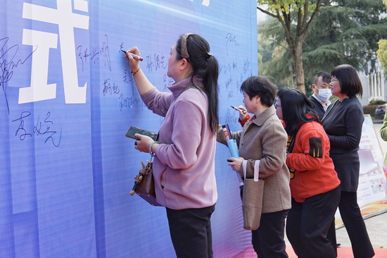 活动中,各位领导、嘉宾和师生代表纷纷在启动仪式背景板上签名,表达大家积极参与创建平安校园的决心和意愿,共同打造人人共享的平安校园。