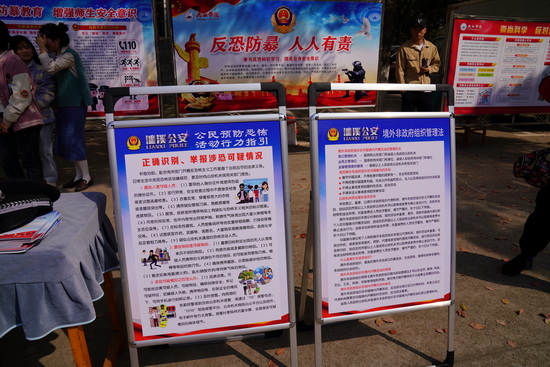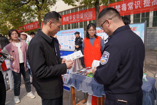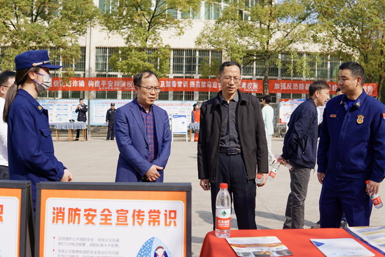 仪式现场,与会领导一一参观了平安校园建设宣传展板,师生代表们在各个平安校园创建宣传台前聆听了驻地各相关单位的安全知识宣讲。