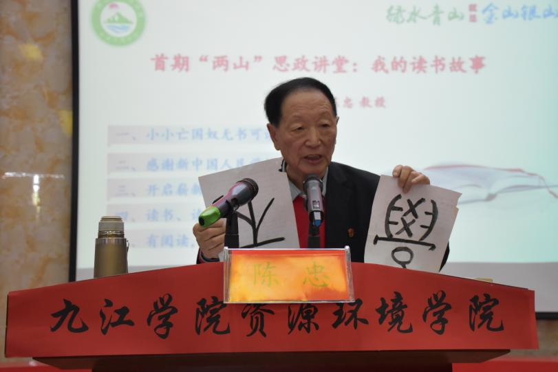 为切实贯彻习近平生态文明思想和党的二十大精神,落实立德树人根本任务,深入推进“三全育人”,更好推动学院“弘‘两山’理念,育环保英才”党建品牌工作与学生思政工作深度融合,4月12日下午,资源环境学院“两山”思政讲堂开讲仪式举行。校党委委员、宣传部部长刘平出席开讲仪式并讲话。随后,首期“两山”思政讲堂开讲,全国关心下一代工作先进工作者、江西省五一劳动奖章获得者、陈忠教授为师生作《我的读书生活》专题讲座。