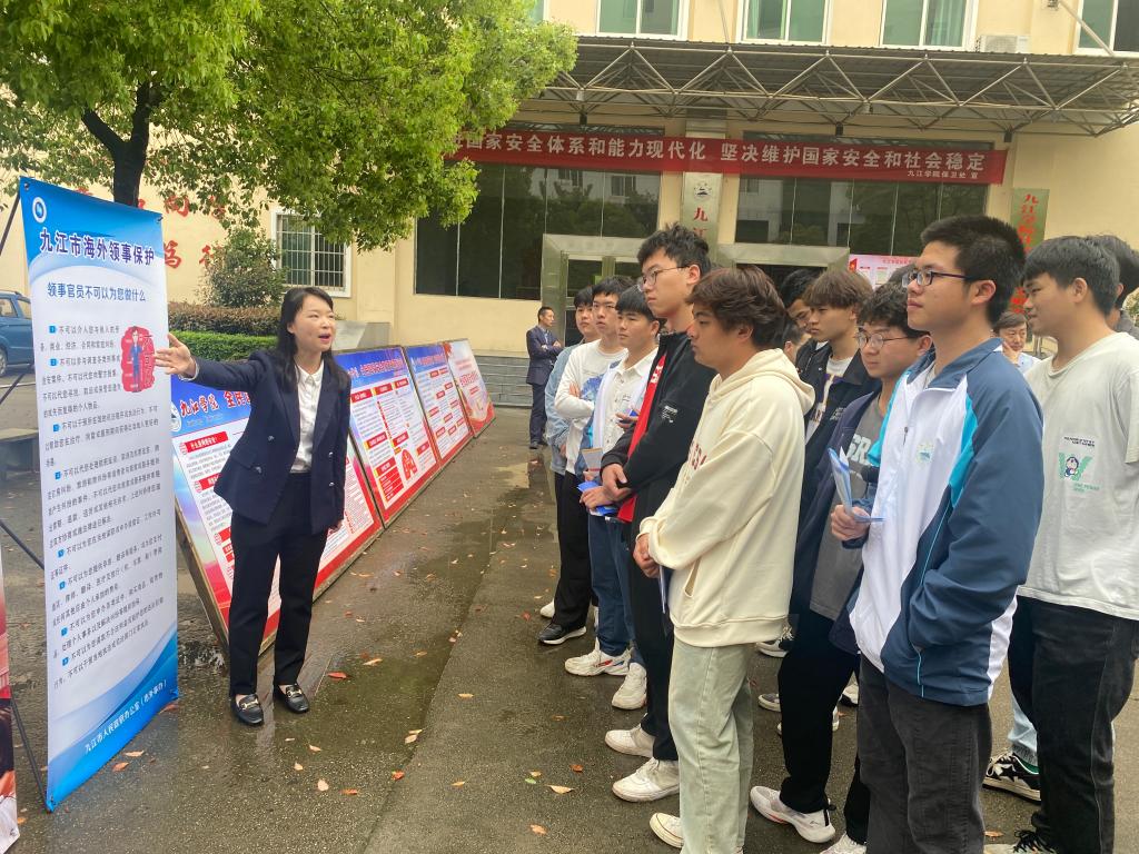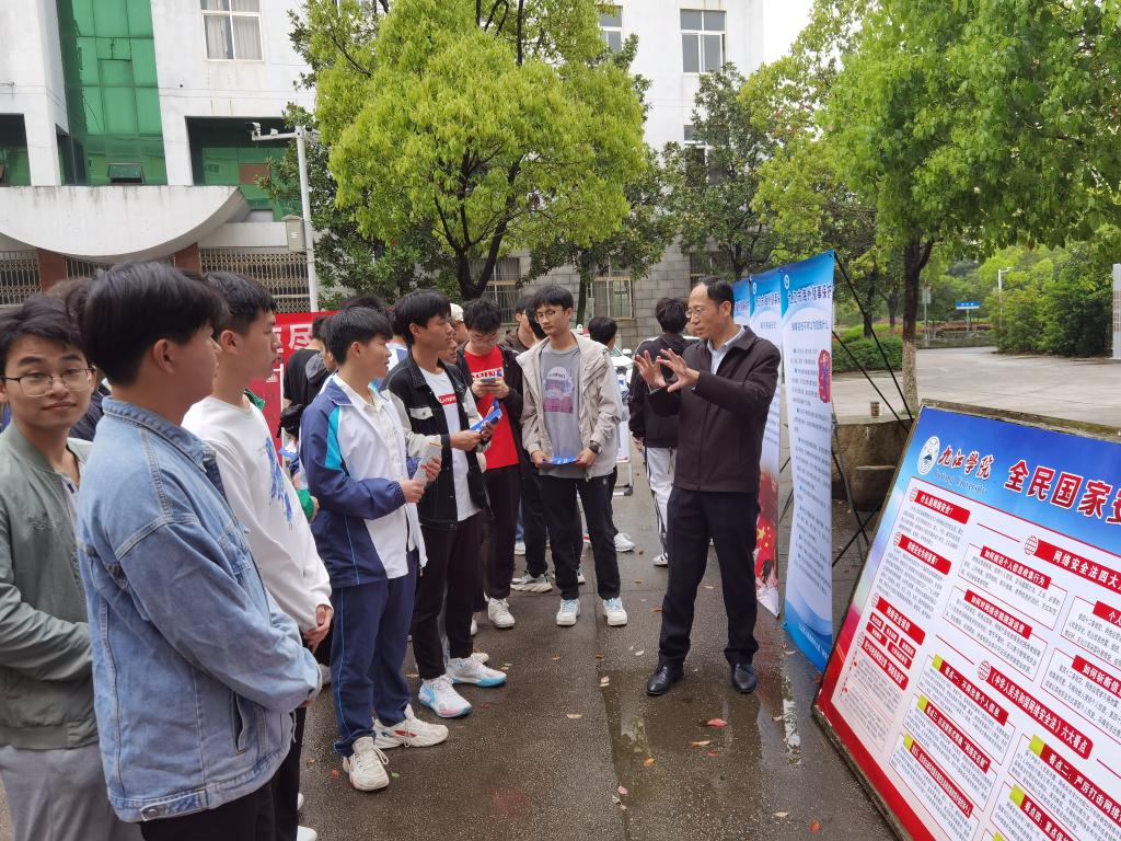 活动以展板的形式向师生介绍了国家安全有关法律和知识,在场师生纷纷在展板前驻足观看,聆听市国家安全局、市外事办、濂溪区国保大队等单位工作人员的宣讲。