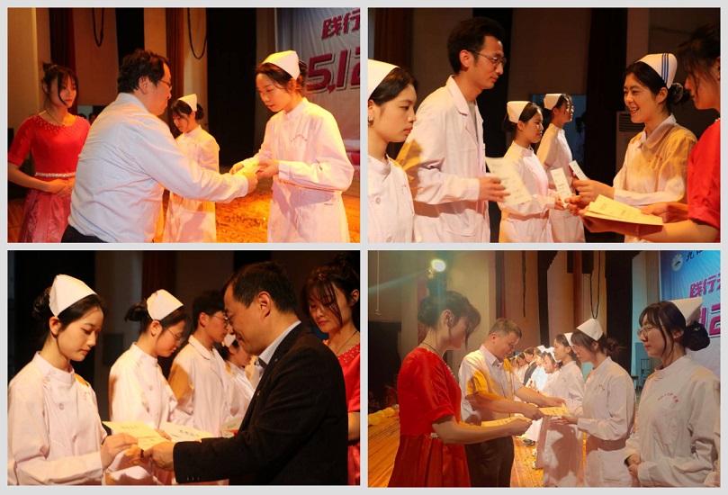 晚会上,学生处负责人、学院负责人等为获得表彰的护理操作技能大赛表现优异者、最美实习生颁奖。