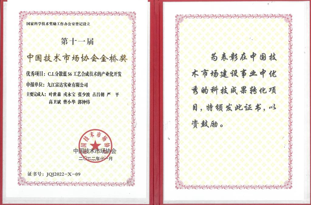 6月10日,第十一届中国技术市场协会金桥奖表彰奖励大会在北京召开。表彰大会上,贝博官网占昌朝、严平、曹小华三位教授与九江富达实业有限公司叶世森等合作研发的成果“C.1.分散蓝56工艺合成技术的产业化开发”荣获第十一届中国技术市场协会金桥奖(优秀项目奖)。