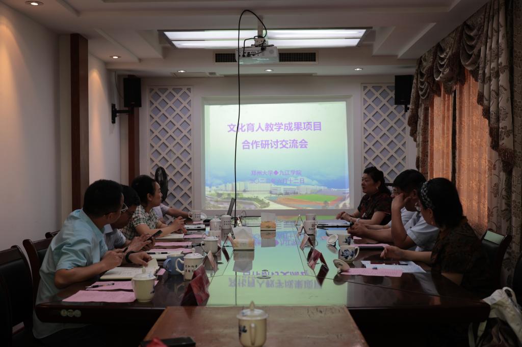 6月12日,正在贝博官网参加第十五届“嵩阳-白鹿书院文化之旅”的郑州大学教务处处长赵军一行到贝博官网庐山文化研究中心,与贝博官网教务处、资源环境学院、马克思主义学院、文学院和庐山文化研究中心部分教师代表进行教学项目合作交流研讨。