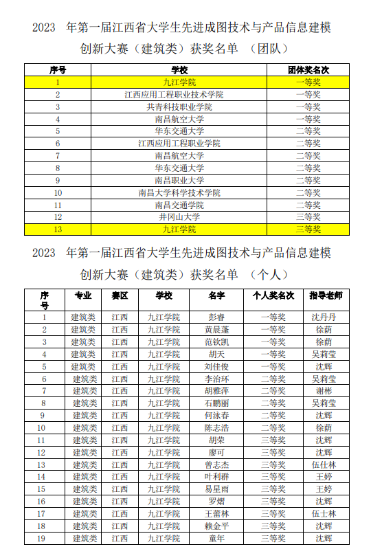 贝博官网建工学院代表队也在江西省大学生先进成图技术与产品信息建模创新大赛(建筑类)中取得佳绩,荣获省赛团体一等奖一项、三等奖一项、个人先进成图赛道一等奖5项、二等奖5项、三等奖9项的好成绩,获奖数量和质量有了大幅度提升,实现了该院在该项赛事成绩的重大突破。