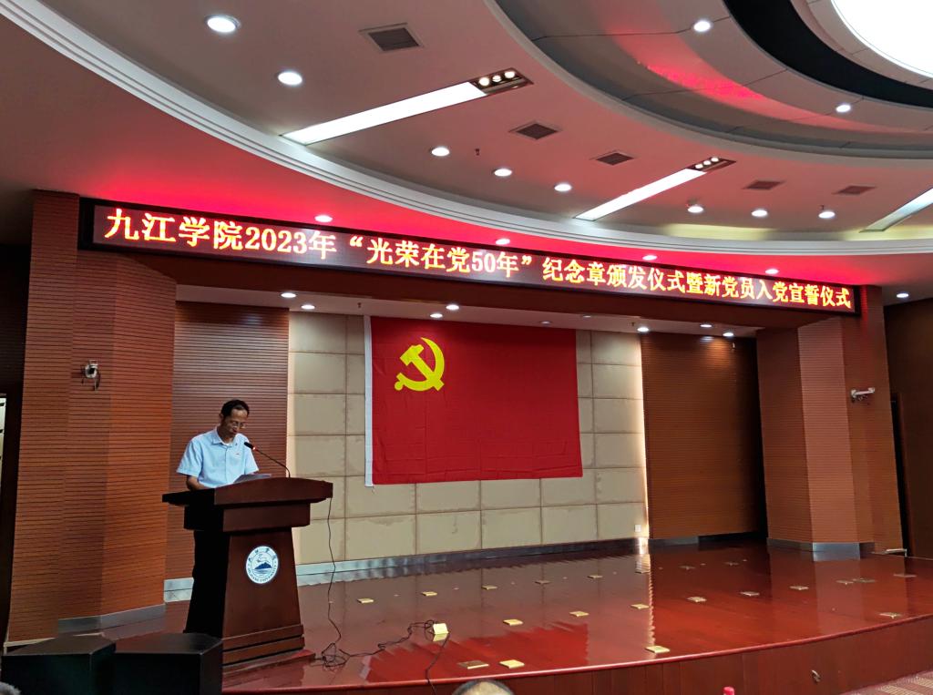 仪式上,王殿元、周雷为老党员颁发“光荣在党50年”纪念章,新党员为纪念章获得者敬献鲜花;新党员进行入党宣誓,老党员重温入党誓词,王殿元领誓。“光荣在党50年”纪念章获得者代表和大学生新党员代表分别发言。