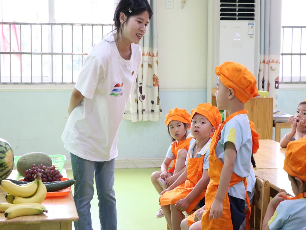 6月20日下午,服务队开展“夏至一起吃西瓜”主题活动,在服务队的引导下,幼儿们积极动手,用塑料刀具完成切西瓜的游戏,并以美食烹饪的形式制作西瓜拼盘,让幼儿学会防暑降温方法。