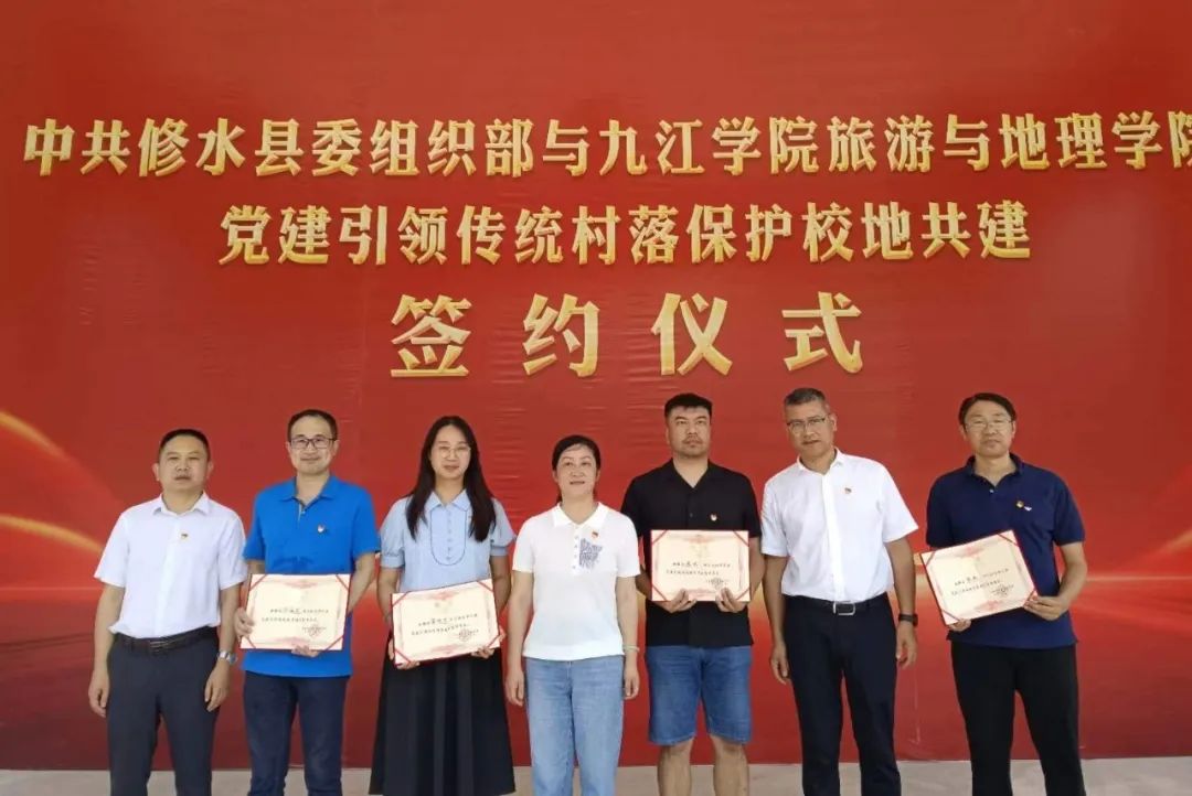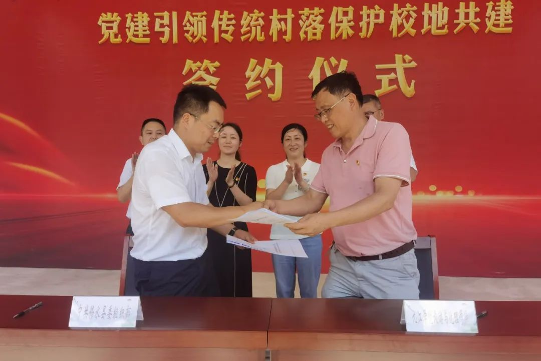6月27日上午,在修水县黄坳乡朱砂村,旅游与地理学院党委与修水县委组织部举行党建引领传统村落保护校地共建签约仪式。