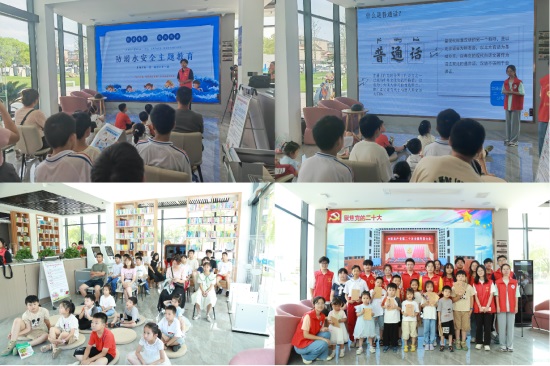 在沙河街道公园的渊明书堂,服务队通过多媒体,在和小朋友互动中,向大家宣传了防溺水安全知识;以提问、绕口令、朗诵诗歌等寓教于乐的方式向小朋友们推广普通话,强调讲好普通话的重要性。孩子们与队员们一同在欢声笑语中感受学习思想文化带来的喜悦感与充足感。