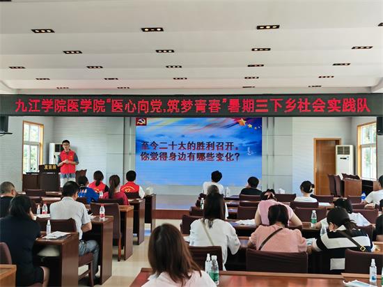 为了进一步贯彻落实党的二十大精神,深入学习贯彻习近平新时代中国特色社会主义思想,推动广大青年将理论学习与实践锻炼密切结合,在投身于乡村振兴的伟大实践中“受教育、长才干、作贡献”,BB贝博艾弗森官方网站医学院“医心向党,筑梦青春”暑期三下乡社会实践队深入农村,走进社区,于6月24日和28日分别前往九江市濂溪区威家镇积余村青少年社会实践点和柴桑区沙河街道新时代文明实践所开展了为期一周的社会实践活动。