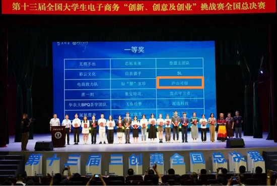 7月31日—8月2日,第十三届全国大学生电子商务“创新、创意及创业”挑战赛(以下简称“三创赛”)全国总决赛在中国矿业大学(江苏徐州)举行。贝博官网管理学院王晴、陈君两位指导老师指导,电子商务专业A2021班李诗艺、詹郡怡、陆杨、谢欣及文学院编导专业A2031班周志俊同学组成的“庐山可宿”团队经过激烈比拼,将所学专业理论应用到实践,充分运用创新思维,发掘新路径,拓展新思路,凭借扎实的创业基底和独特的创意,最终荣获全国一等奖及最佳创业奖,王晴老师、陈君老师也被授予“优秀指导老师”称号,实现了贝博官网在该项赛事上的新突破。
