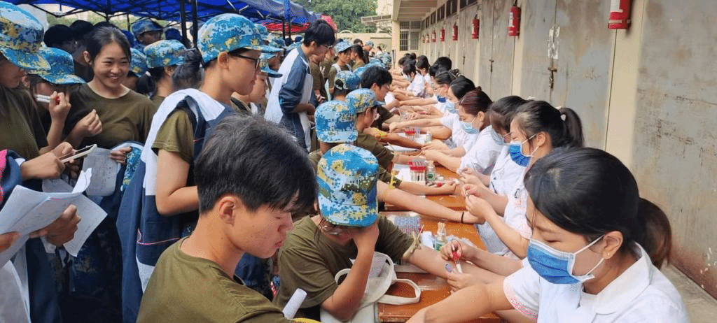 据悉,为及时、准确掌握新生健康状况,把好学生入校的“健康关”,校医院会同附属医院、濂溪区中医院、濂溪区疾控中心、精益眼镜等单位针对此次体检工作多次协调沟通、召开专题培训会,组建副主任医师为主检医师,业务骨干医师及检验、护理人员、志愿者100余人参与的新生体检工作组,配备移动DR胸片车等各类仪器检查设备,全力保障此次体检工作的顺利进行。体检设有常规检查项目(内科、外科、五官科、嗅觉、色觉、口腔科、眼科、测量身高、体重、血压、脉搏)、肝功能、肾功能和结核胸片筛查等。目前,各项目组分工有序,协作高效,每天早晨6:00开始,医护人员为入学新生开展采血、DR摄片、生化检查等健康检查。