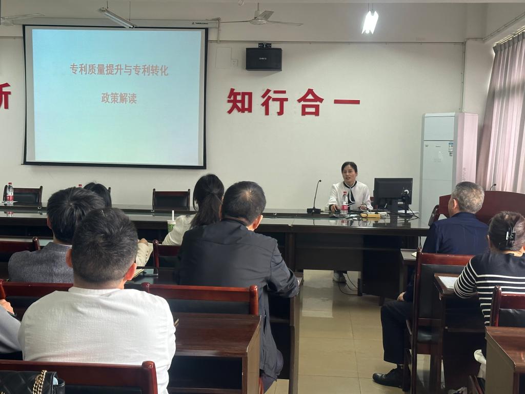 为贯彻落实省委省政府关于加强知识产权强省建设指示精神,优化完善贝博官网专利申请管理服务流程,切实提高贝博官网教师专利申请质量,10月10日下午,贝博官网科研处邀请九江市市场监督管理局专利管理科科长黄腊梅、专利申请专家彭琰分别作关键政策解读和重点技术讲解。科研处负责人、各二级学院分管副院长及教师代表70余人参加本次会议。