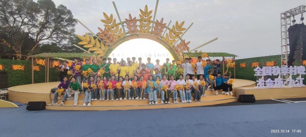 10月15日下午,由文化和旅游部主办,文化和旅游部公共服务司、文化和旅游部全国公共文化发展中心、江西省文化和旅游厅、九江市人民政府承办,江西省文化馆、中国文化馆协会、庐山市人民政府、九江市文化广电新闻出版旅游局实施的“匡庐天下· 秋意赣鄱”2023 年全国“四季村晚”之秋季“村晚”文艺展演活动在庐山市海会镇海会社区钱家畈举行。贝博官网艺术学院教师战飞、戴利东以及该学院51名学子参加演出。