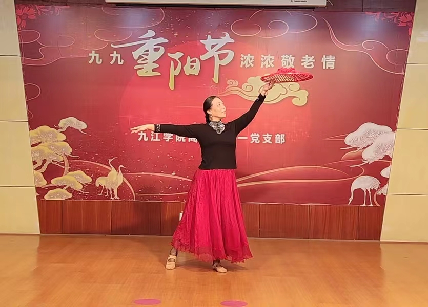 节目表演在吴桃娥、马军、黄硕红和王春玲等老师表演的诗朗诵《我是共产党员》中拉开序幕。紧接着是沈萍等老师表演的小合唱《迎接灿烂夕阳每一天》,万美兰老师表演的独舞《万泉河水清又清》,刘建、黄硕红两位老师表演的诗朗诵《读中国》,袁林老师表演的独唱《静夜思》,皋明、沈萍等老师表演的舞蹈《莫格日勒河》,马军、曾华老师的小提琴和吴桃娥、黄硕红、龚胜红老师的空灵鼓合奏《送别》,刘建老师单独表演的诗朗诵《变老的时候》。到了杨耀防老师演唱的《中国功夫》《大花轿》两首歌曲时,场上场下互动将场面气氛推向高潮。最后一个节目是刘文杰、高国友、陈和平、王义奎、李淑萍、刘梅君和潘淑红等带来的二胡齐奏、小乐队伴奏的《北京有个金太阳》《牧羊曲》,喜庆欢快,旋律优美。与会的离退休教职工在轻松、热闹的气氛中,愉快地度过了一个下午。