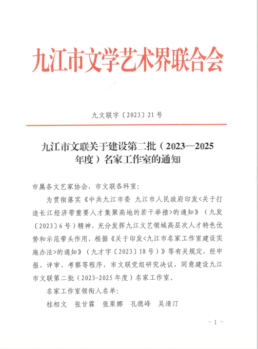 为充分发挥九江宣传文化领域高层次人才特色优势和示范带头作用,根据《关于印发<九江市名家工作室建设实施办法>的通知》(九才字〔2023〕18号)》文件精神,九江市在全市范围内选拔一批在宣传文化领域有较高的学术水平和造诣,有较高的学术声望和影响力的宣传文化人才。经过宣传发动、个人申报、协会推荐、专家评选等程序,贝博官网艺术学院教师张甘霖、张栗娜当选九江市文联名家工作室(2023-2025年度)领衔人人选。