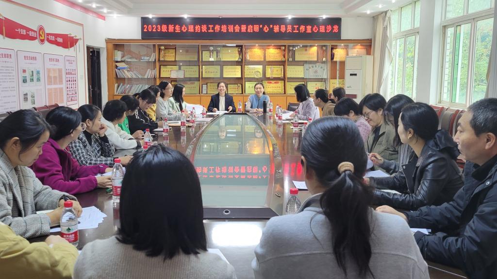 为提高辅导员开展学生心理健康教育的能力和水平,搭建辅导员交流研讨平台,扎实推进辅导员工作室建设工作,助力心理健康教育提质增效,11月8日上午,2023级新生心理谈心服务培训会暨启明“心”辅导员工作室心理沙龙在学生活动中心开展。学生处心理健康咨询中心、启明“心”辅导员工作室教师及各二级学院心理健康专职辅导员参加活动。