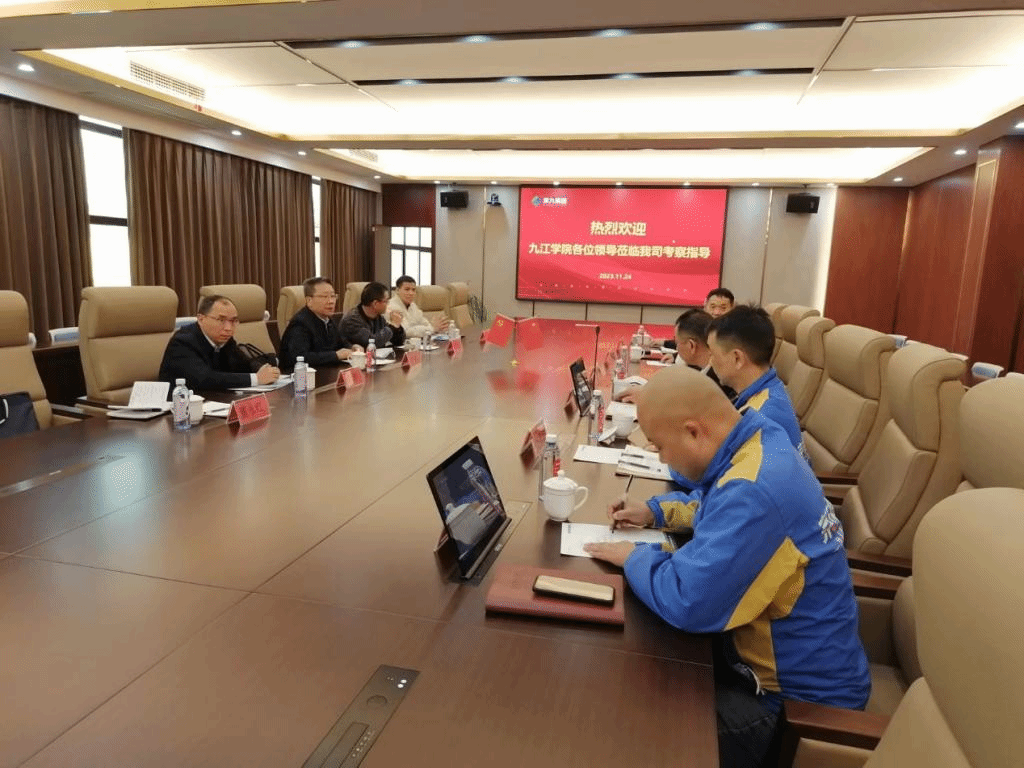 为夯实九江市“千个部门进千企 精准帮扶促发展”专项帮扶活动,11月24日下午,副校长严平率产学研办公室负责人、化学化工学院博士、机械与智能制造学院博士一行深入贝博官网对口帮扶企业江西京九电源(九江)有限公司开展精准帮扶工作。江西京九电源(九江)有限公司总裁吴明耀、总经理郭少银、行政总监谢传发、技术总监刘三元接待了严平一行。