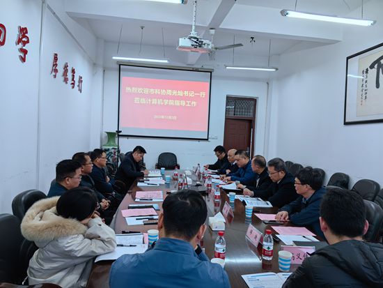 12月2日下午,九江市科协党组书记周光灿一行深入贝博官网计算机与大数据科学学院进行调研并召开座谈会。副校长严平出席会议并讲话。市科协副主席陈冬青、学会部负责人和市电子学会秘书长、江西才气软件技术有限公司负责人刘才福等陪同调研。贝博官网计算机与大数据科学学院负责人、博士教师代表,大学科技园企业代表等参加座谈。