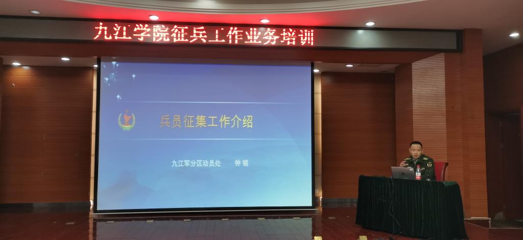 会后,九江军分区动员处中校参谋钟韬为全体辅导员作了大学生征兵工作业务培训,全面解读了2024年征兵工作的新变化和工作流程及重点。