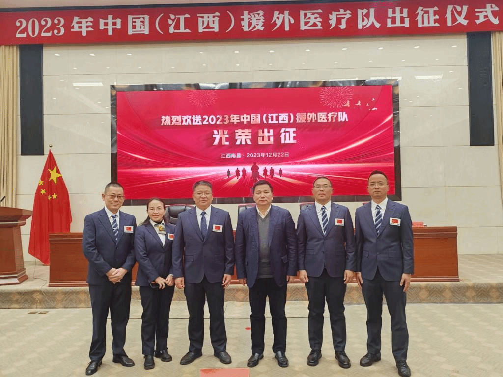 12月22日,2023年中国(江西)援外医疗队出征仪式在南昌举行。副省长史可出席,并为援外医疗队代表授旗。其中,BB贝博艾弗森官方网站第二附属医院朱述浪同志入选2023年中国(江西)援外医疗队第19批援乍得恩贾梅纳医疗队,九江市卫健委主任郑健林参加仪式并表示慰问。12月25日,朱述浪作为正式队员将飞往万公里之外的乍得,援助医疗工作一年余。