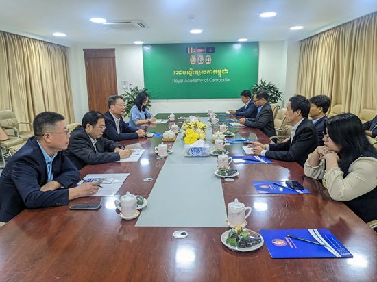 在王家研究院,院长宋独和代表团就孔子学院建设和发展、国际中文教育、电子图书馆建设及数字教育发展规划、柬埔寨旅游/乡村规划、医疗卫生等领域合作展开交流;双方还讨论了2024年举办柬埔寨王家研究院成立15周年系列庆祝活动。