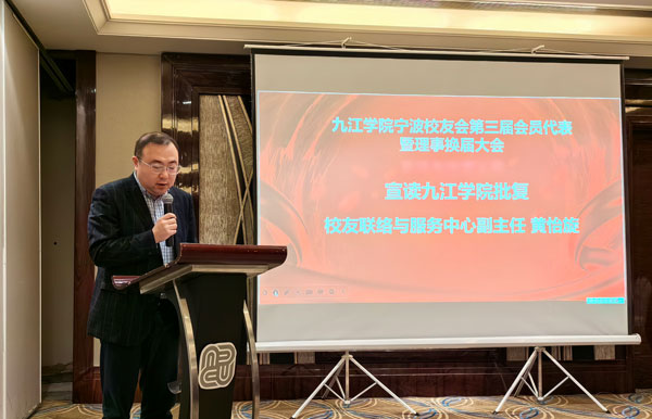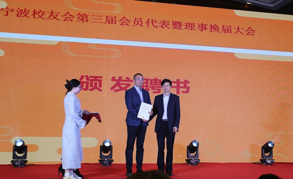 BB贝博艾弗森官方网站校友联络与中心副主任黄怡旋宣读了《关于同意宁波校友会举办换届大会及第三届组织机构人员名单的批复》,批复同意宁波校友会举行换届,同意宋长佑为宁波校友会第三届会长,殷永平为执行会长等决议。