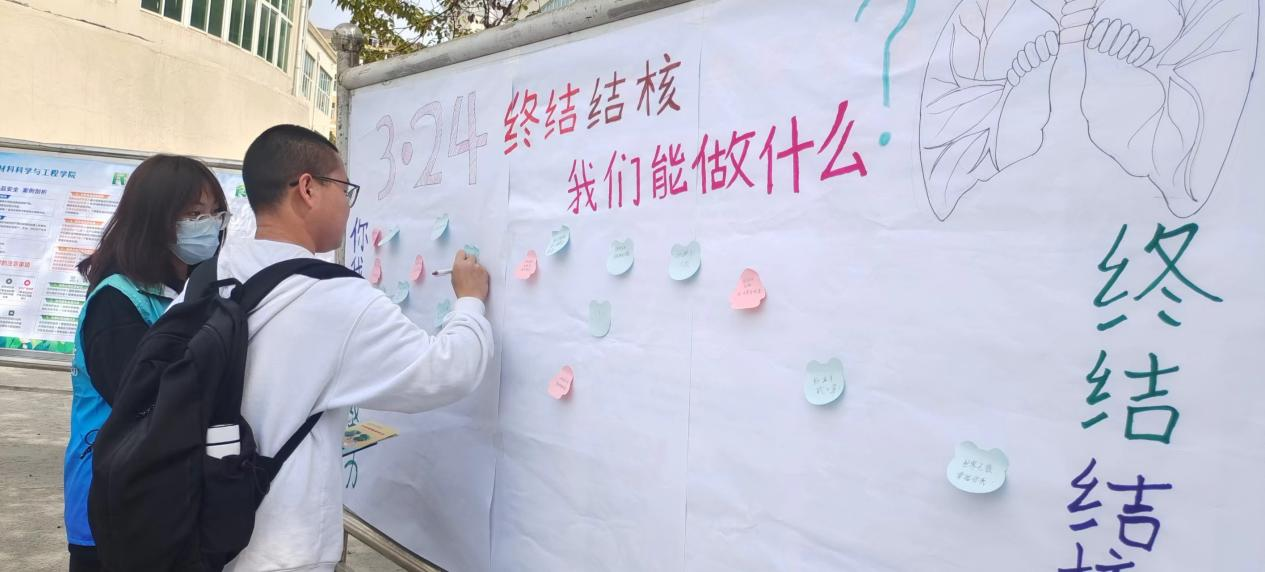 在2024年第29个世界防治结核病日来临之际,为了号召社会各界力量广泛参与结核病防治,加大贝博官网结核病防治的宣传力度,积极响应全球终结结核病流行的目标。校医院制定了活动方案联合多部门组织开展了“你我共同努力,终结结核流行”系列结核病防治主题宣传活动。