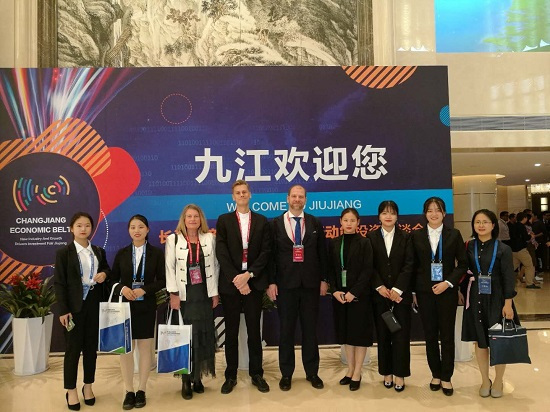 学生为长江经济带.九江新产业新动能投资洽谈会提供翻译服务