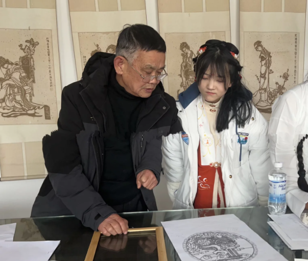 瑞昌剪纸非遗传承人朱朴光老师为学生讲授剪纸