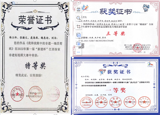 教育教学,硕果累累。学院以科研引领为导向,向日常教研要质量,搭建5个教研团队,全面推动高质量发展。学院教师主持完成国家社科基金项目2项,省级科研课题立项30余项,其中省级教改课题立项2项,省基础教育课题10项,省高校人文13项,省社科基金2项,省教育规划5项,产学研协同育人项目5项;出版专著/教材6部,在学术刊物上公开发表省级以上论文140余篇,其中在SCI8篇,SSCI4篇,CSSCI6篇,EI3篇,北大中文核心3篇;获国家专利36项,获江西省社会科学优秀成果奖三等奖2项,校级教学成果奖二等奖2项;获省级一流课程1门,校级精品资源共享课程立项2门,校级一流课程4门;6位教师获省级以上教学竞赛二、三等奖;学生在外研社“国才杯”全国大学生外语能力大赛、“赣江杯”大学生英语竞赛、全国高校商务英语综合能力大赛、“燕兴杯”大学生英语应用能力竞赛、“田家炳”杯全国师范生技能大赛等各类专业赛事上获省级及以上奖励130余项。