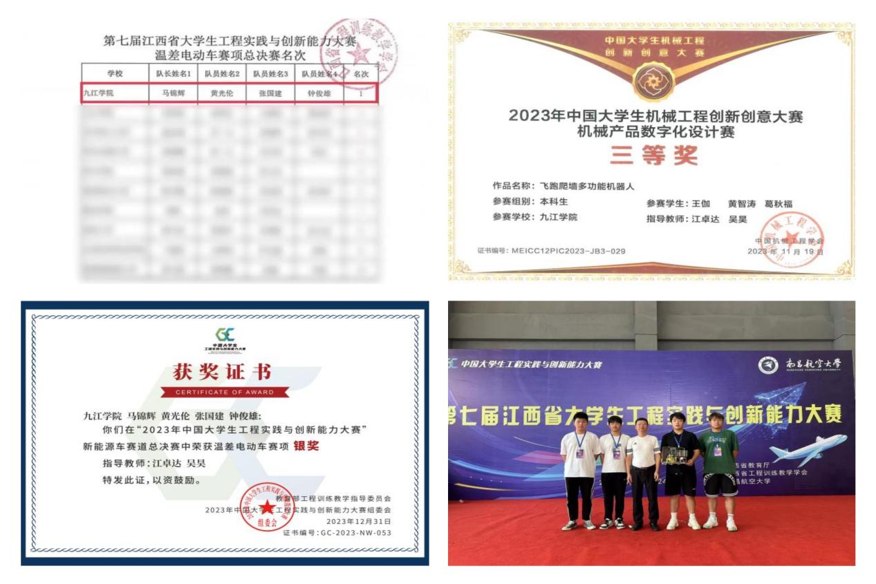 机械A2123“众志成城”班同学在九八抗洪团结一致的精神和机械学院红工匠精神的引导下,积极参加各项学科竞赛。在第七届全国大学生工程实践与创新能力大赛中,马锦辉等人点燃温差电动车中的酒精灯,灯火闪烁间,小车从红军长征起点“瑞金”出发,一路历经“突破三道封锁线”“血战湘江”“强渡乌江”“占领遵义”“四渡赤水”……最终胜利抵达“延安”。酒精灯中的焰火熠熠,引领着我们随小车一起,追寻那段红色的记忆,开启一场别样的红色筑梦之旅,最终获得国赛银奖。王伽等同学其他作品在中国大学生机械工程创意大赛机械产品数字化设计赛中获得国家三等奖。