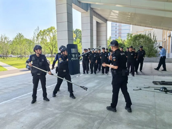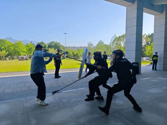 为进一步维护校园安全稳定和加强平安校园建设,增强全校师生反恐防暴意识和能力,提高安保人员反恐防暴应急处理能力,5月13日,贝博官网保卫处联合濂溪区特巡警大队在厚德楼前开展反恐防暴应急处置实训演练。