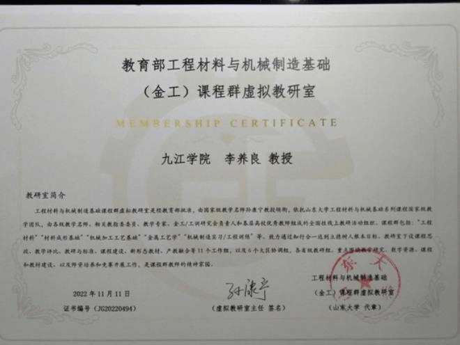 学院副院长李养良入选教育部工程材料与机械制造(金工)课程群虚拟教研室成员