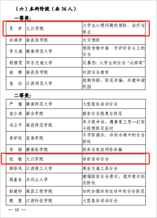 近日,省教育厅公布2023年全省大中小学公共安全教育骨干教师教学能力展示活动的比赛结果,贝博官网保卫处(平安建设办公室)选派的教师代表建筑工程与规划学院夏梦老师的参赛作品《大学生心理问题的预防、治疗与矫正》和经济学院张敏老师的参赛作品《体育活动安全》分别获得本科教师组一等奖和二等奖。