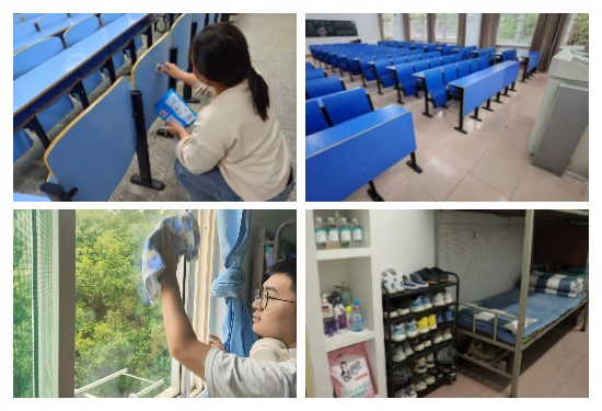 劳动是成长的必修课,机械学院通过开展劳动教育宣传周系列活动,帮助学生树立正确的劳动观念,促进学生的全面发展。5月,各年级开展以“践行劳动教育,弘扬劳动精神”为主题的教室实验室宿舍卫生大扫除。同学们分工合作,对机械楼大厅、楼道等公共区域、竞知楼我院教室以及各自寝室进行了彻底清洁,窗户的污点、角落里的蜘蛛网、凳子上的小广告,在同学们的清扫中,焕然一新。此次大扫除不仅美化了校园寝室环境,也深化了学生对劳动价值的认识,推动了我院劳动教育的深入开展,培养了学生主动劳动、坚持劳动的良好习惯。