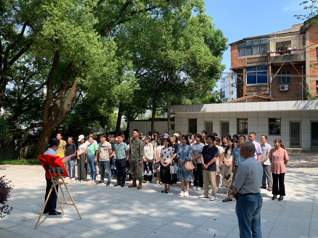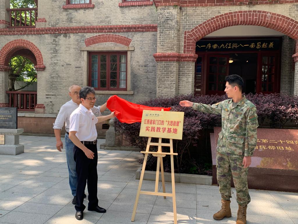 5月29日下午,江西省家门口的“大思政课”实践教学基地在“国民革命军第二十四师叶挺指挥部旧址”举行揭牌仪式。九江市文物保护与考古中心主任熊凯、庐山康复疗养中心(解放军171医院)政治工作处主任黄来、马克思主义学院负责人以及相关教研室教师、教育学院A2321班全体学生共七十余人参加揭牌仪式。
