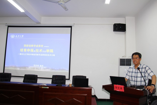贺宏斌结合典型案例从高等教育教学成果奖申报的背景学理、制度导向、特色举隅等方面,围绕教学成果奖项目选题、高水平团队组建、项目成果特色凝练、申报材料撰写等方面作了详尽讲解。他还根据历届国家级教学成果奖获奖项目数据分析和当前高等教育教学改革热点,以及江西省教学成果奖青年培育项目等对贝博官网教学成果奖培育进行了具有针对性和可操作性的指导。