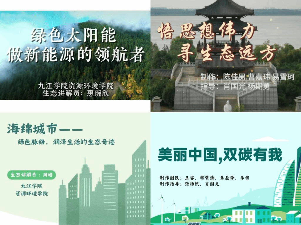 为传播生态环境科学知识,讲好九江绿色环保故事,学院积极组织学生参加了生态环境部2024年“六五环境日”系列科普活动之一的“我是生态环境讲解员”活动江西赛区选拔赛。经过赛前的精心准备,学院多名学子获九江市“我是生态讲解员”优秀奖,选送的生态环境宣传片获得省三等奖1项,选送的《美丽中国,双碳有我》获得宣传片“最佳创意奖”。