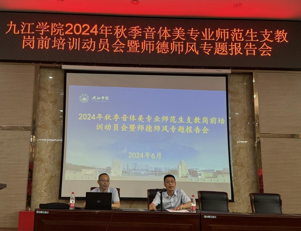 6月13日下午,学校召开了2024年秋季音体美师范专业支教生岗前培训动员暨师德师风报告会,对2024年秋季音体美师范生实习支教基本情况进行了介绍,并就支教工作进行了动员、部署和安排。教务处相关负责人、相关学院负责教师以及2021级音体美师范专业实习支教生等共计110余人参加动员报告会。
