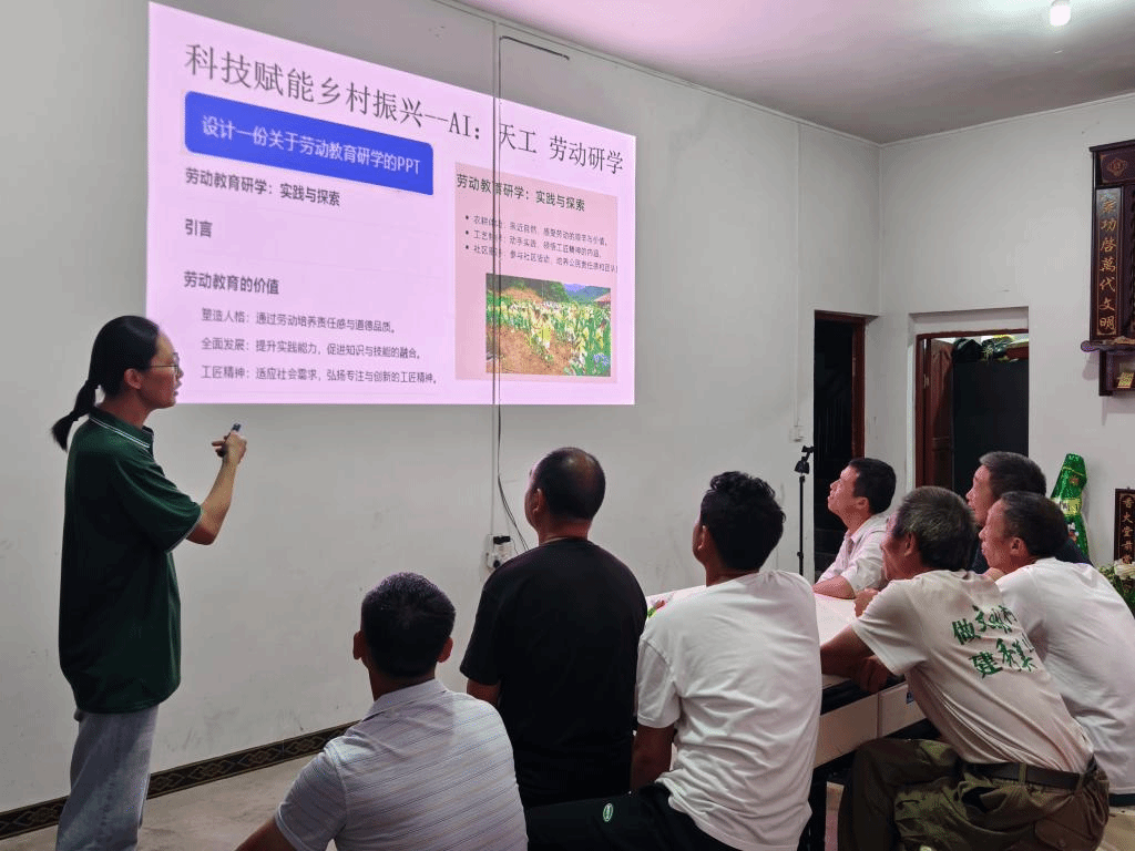 在帮助村里开发“劳动教育研学项目”的过程中,服务队重点教授基层村干部使用KIMI完善项目内容。