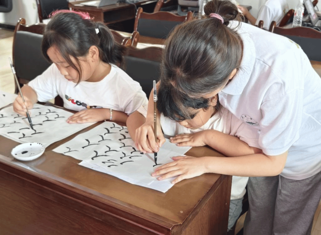 “人”这个字由两个笔画组成,一撇一捺。队员陈玉洁通过现场演示,先教授汉字笔画,再带领观摩笔锋变化。通过执笔书写,让学生们感受翰墨中华。“老师,这个墨水好香呀!”同学吴洛曦开心地笑道。文小青传承中华优秀传统文化,书法课堂在欢声笑语中绽放出中华瑰宝的无限魅力。