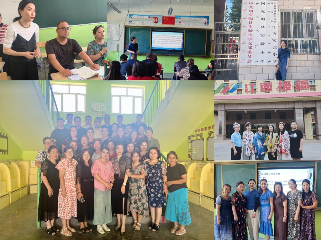 阿克陶县隶属于新疆维吾尔自治区克孜勒苏柯尔克孜自治州,少数民族教师占比高、国家通用语言文字基础比较薄弱。在南疆地区推广普及国家通用语言文字,对于促进民族融合、铸牢中华民族共同体、加快民族地区的社会发展,提高文化程度,巩固边疆,都意义深远。援疆支教工作团主要围绕国家通用语言文字法律法规、普通话语音基础知识、普通话字词和朗读说话训练等内容开展教学;在培训辅导普通话的同时,将《国家通用语言文字法》、中华优秀传统文化等内容融入其中。援疆支教工作团以自己的实际行动,深层次地推进了文化润疆,做到春风化物润物无声的交流,共同铸牢中华民族共同体意识。