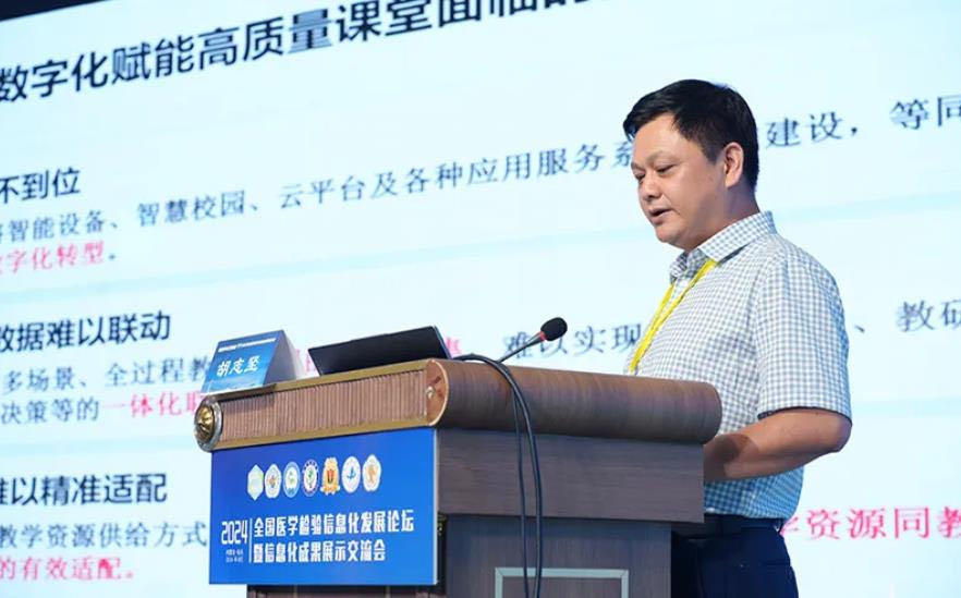 会上,贝博官网附属医院副院长胡志坚受邀就“数字化赋能医学检验技术高质量课堂的构建”作报告,报告从数字化教育的现状、存在的问题与挑战以及贝博官网医学检验技术专业数字化教学平台的构建等方面进行了交流。