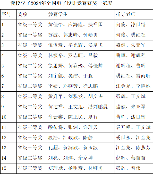 2024年全国大学生电子设计竞赛于7月28日至8月1日成功举办。电子信息工程学院学子在此次竞赛中再创佳绩,共荣获15个省级奖项,其中包括一等奖3项,二等奖6项,以及三等奖6项。获奖总数量在省内本科院校中排名第二。