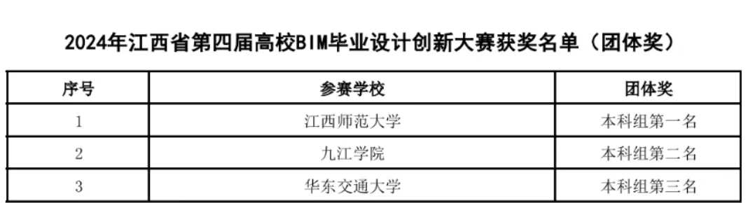 第四届江西省大学生高校BIM毕业设计创新比赛分为初赛、复赛两个环节,历时5个月,吸引了省内40所高校超过300支队伍报名参赛。此项赛事被列为教育部A级权威比赛的目录,比赛内容覆盖工程类专业整个学科体系,为工程类专业师生提供了一个多学科、多专业交叉融合、创新应用的良好舞台,是检验专业课教学的试金石。建工师生认真备赛,最终8支队伍闯进决赛获奖。