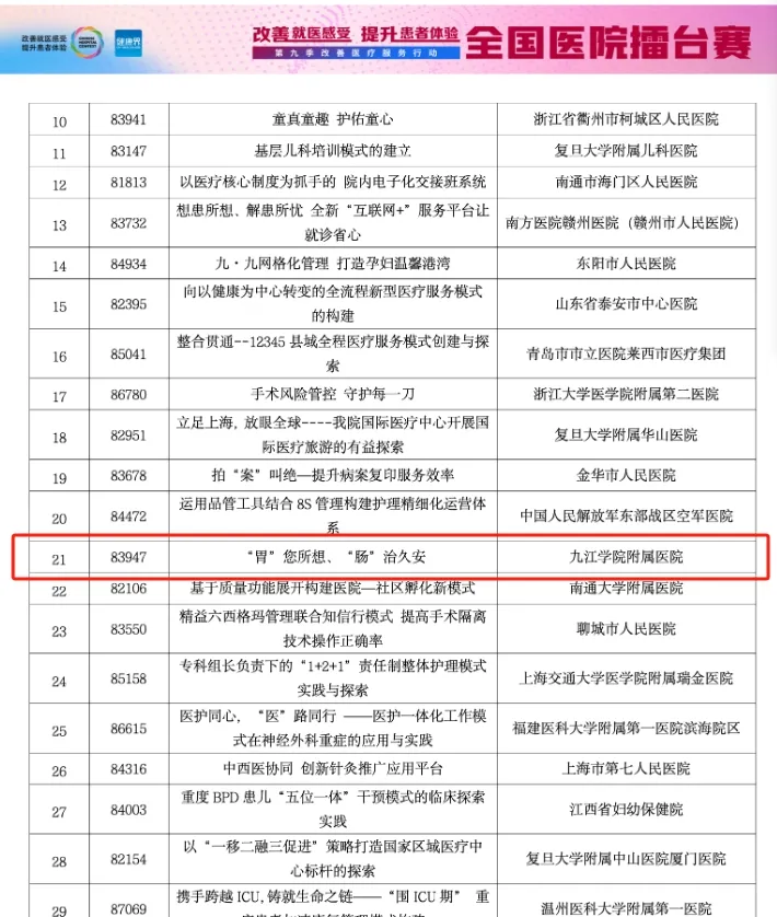近日,由国家卫生健康委员会医政司指导,《健康界》联合主办的2024年第九季改善医疗服务行动全国医院擂台赛圆满落幕。BB贝博艾弗森官方网站附属医院在“X创新探索”主题领域的参赛项目《“胃”您所想、“肠”治久安》成功入围并荣获华东赛区优秀案例奖。