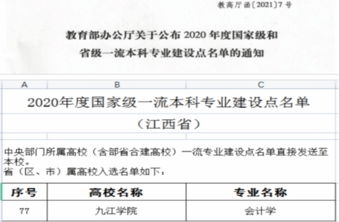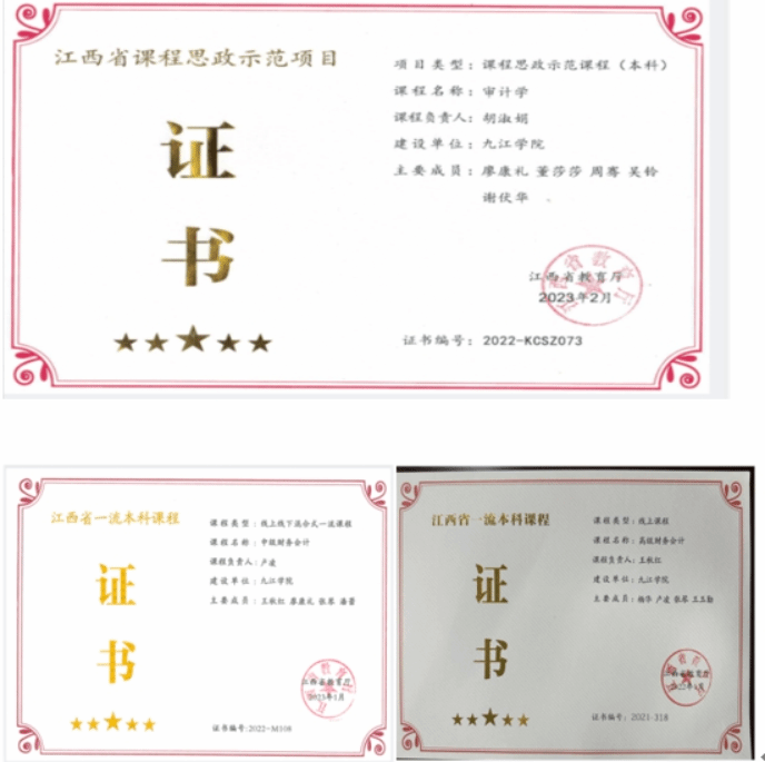 学院持续深化教育教学改革,大力加强师德师风建设,实施教师能力分类提升计划,强化人才培养保障体系,在师资队伍、专业建设、课程建设、科学研究等方面扎实迈进,成效明显。近年来,通过引育并举,优化教师结构,学院柔性引进苏州大学权小锋担任学术院长,现有教授11人,副教授 39人,博士教师53人,在读博士5人,专任教师队伍博士比44.5%,5名教师先后获得师德师风标兵、立德树人楷模和教书育人楷模,2名教师入选九江市“双千双百”人才。会计学专业获批第二批国家级一流本科专业建设点,立项国家级一流课程1门,省级9门,会计学专业主干课程群慕课应用型教学团队获批省级教学团队,会计学虚拟教研室获江西省首批虚拟教研室立项建设点,获批校文科类课程思政研究中心,出版教材13部,立项省级教改课题13项、教育部产学研协同育人项目26项,近五年,累计获批省部级以上纵向课题48项,其中教育部课题3项,国家自然科学基金课题5项,发表高质量论文60余篇。学院成功举办第一届庐山会计会计与公司治理论坛。
