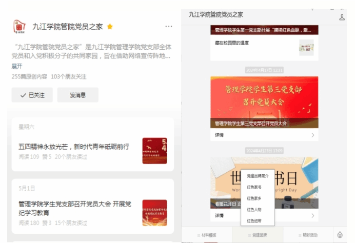 学院党委坚持以习近平新时代中国特色社会主义思想为指导,全面深入学习贯彻党的二十大精神,坚持以党的政治建设为统领,立足基层党组织“三化”建设,着力增强党组织政治功能、组织功能。持续打造“管院党员之家”微信公众号及学生党支部“赓续红色血脉,激扬红色青春”品牌建设,学院党委曾多次荣获学校“先进基层党组织”,学生第三党支部曾荣获市“百优党支部”称号,入选校首批标杆党委创建单位,学生三、四支部入选标杆党支部创建单位,教师党支部书记“双带头人”工作室一个,“四强”党支部一个。多次获校“优秀微党课”“优秀主题党日”优秀奖。