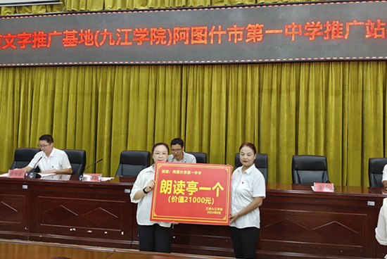 为给阿图什市第一中学师生在诵读及普通话训练等方面给予支持,在成立推广站的同时,国家语言文字推广基地(BB贝博艾弗森官方网站)还向该校捐赠了朗读亭一座,为师生提供一个更加便捷、高效的阅读平台,帮助师生提升阅读能力和朗诵水平。